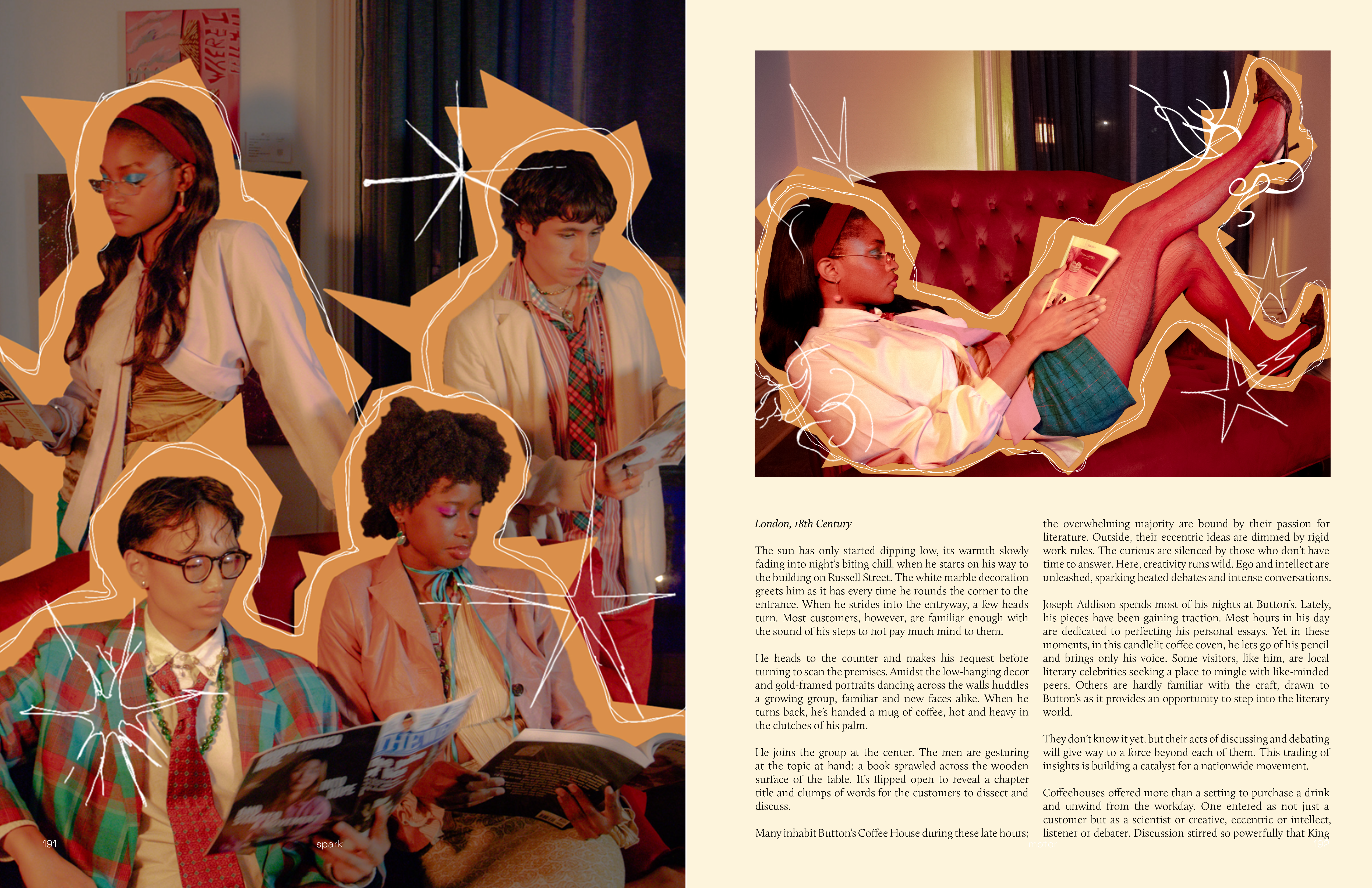 Many inhabit Button’s Coffee House during these late hours; the overwhelming majority are bound by their passion for literature. Outside, their eccentric ideas are dimmed by rigid work rules. The curious are silenced by those who don’t have time to answer. Here, creativity runs wild. Ego and intellect are unleashed, sparking heated debates and intense conversations.